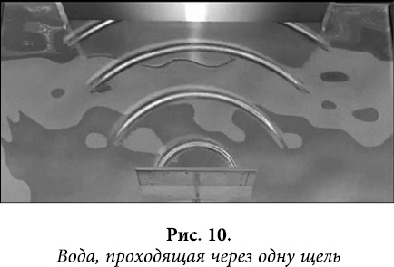 Если мы пропускаем через щель не шарики, а воду, то получим тоже одну полоску, как и от шариков.