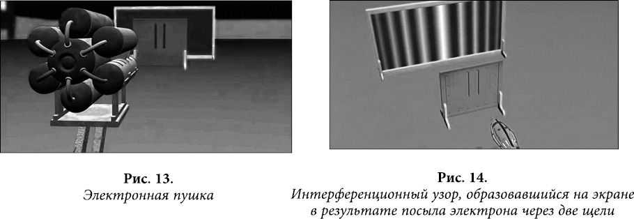 Но выяснились еще более странные, прямо-таки парадоксальные вещи: электрон одновременно проходит через обе щели – и не проходит ни через одну, он проходит через одну щель – и проходит также через другую. И все эти возможности происходят одновременно, накладываясь одна на другую.